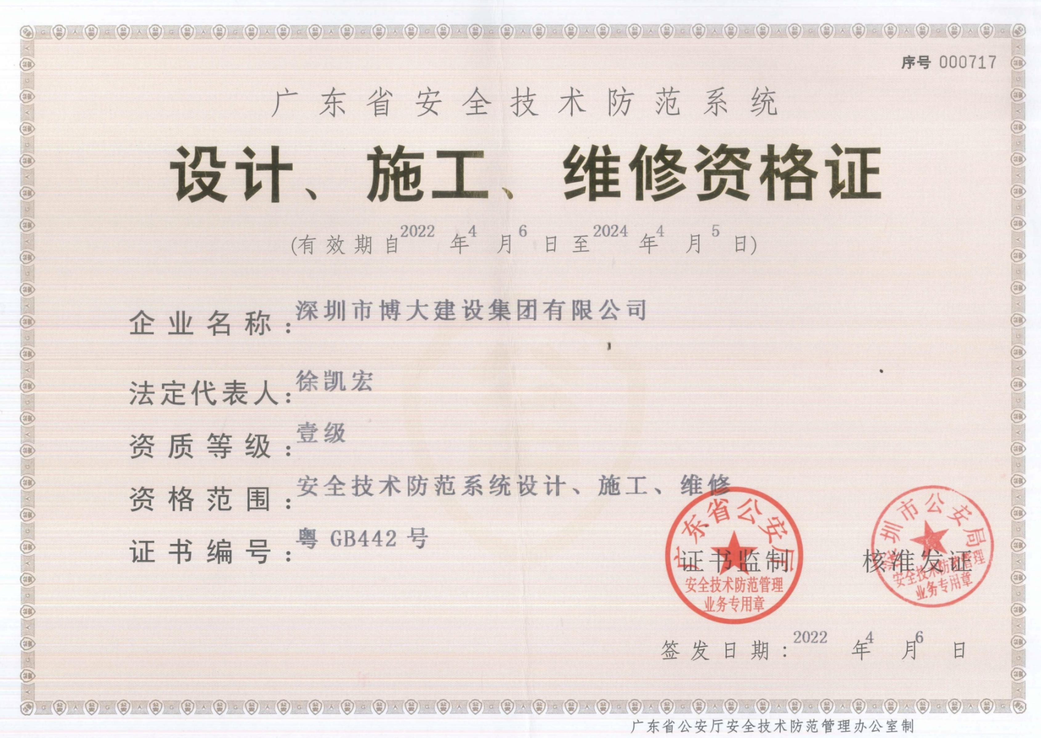 安全技術防范系統設計、施工、維修資格證