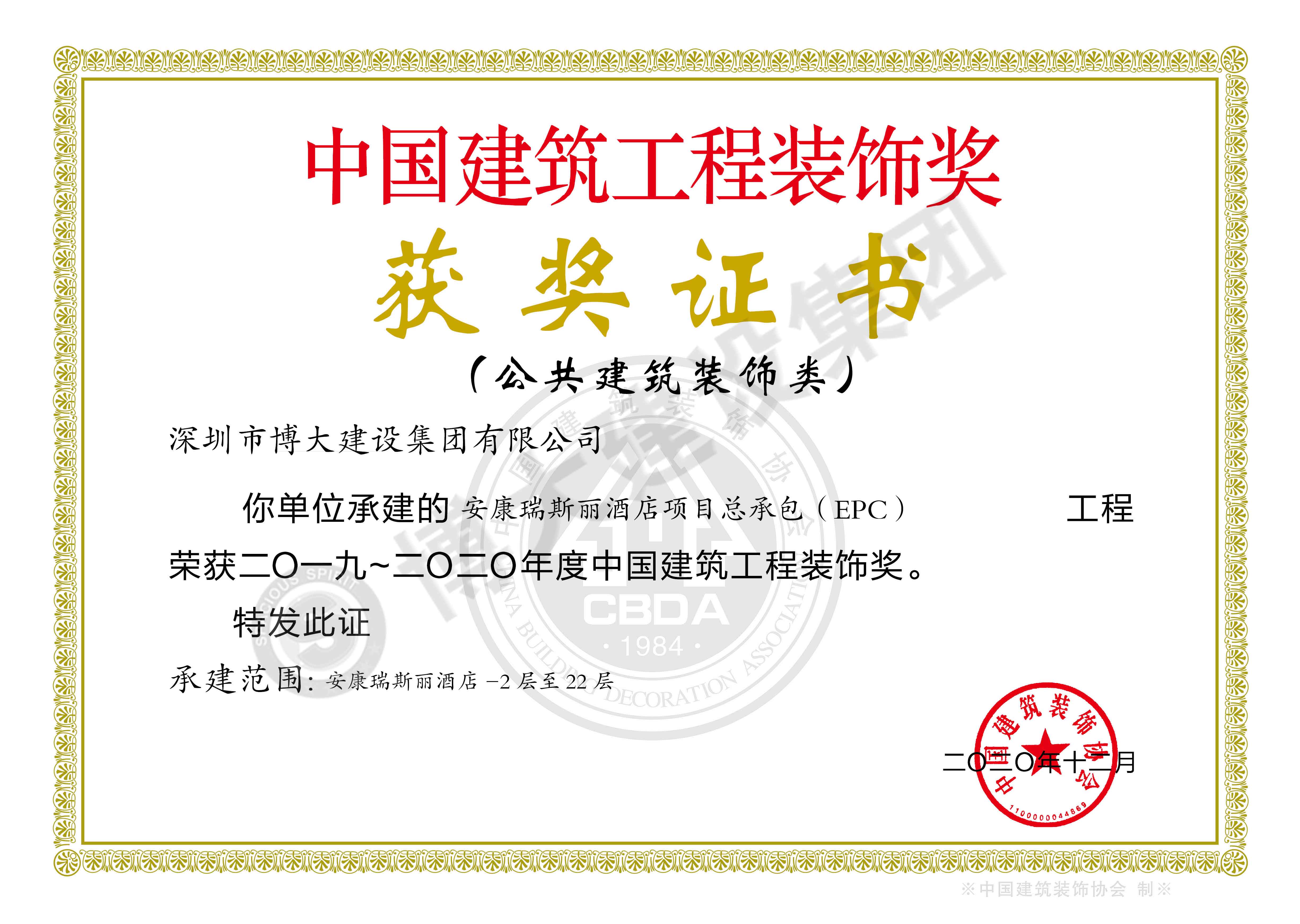 中國建筑工程裝飾獎(安康瑞斯麗酒店裝飾施工)