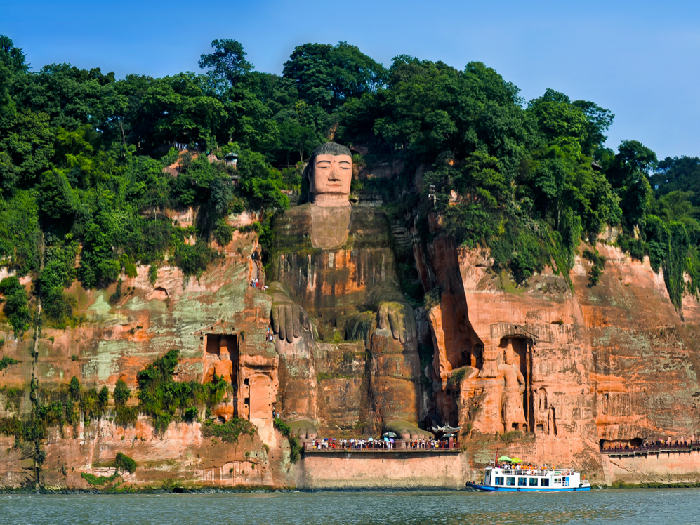 樂山大佛,又名凌云大佛,位于四川省樂山市南岷江東岸凌云寺側(cè),瀕大渡河、青衣江和岷江三江匯流處。大佛為彌勒佛坐像,通高71米,是中國最大的一尊摩崖石刻造像。