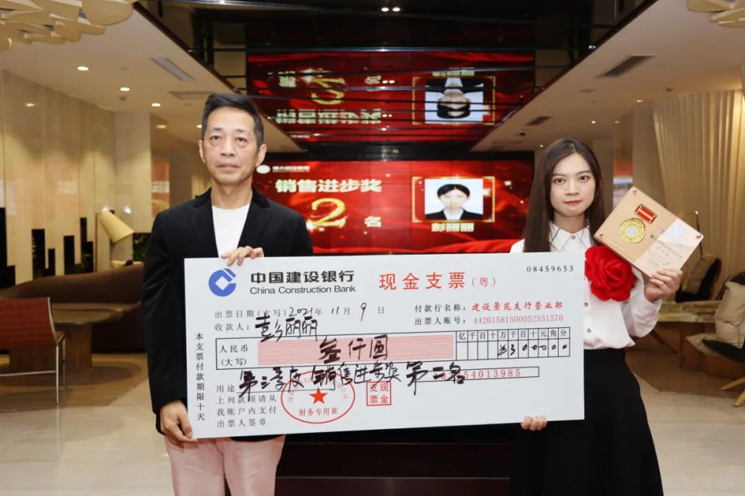 圖 | 集團副董事長李朕鴻為彭麗麗頒發第三季度銷售進步獎