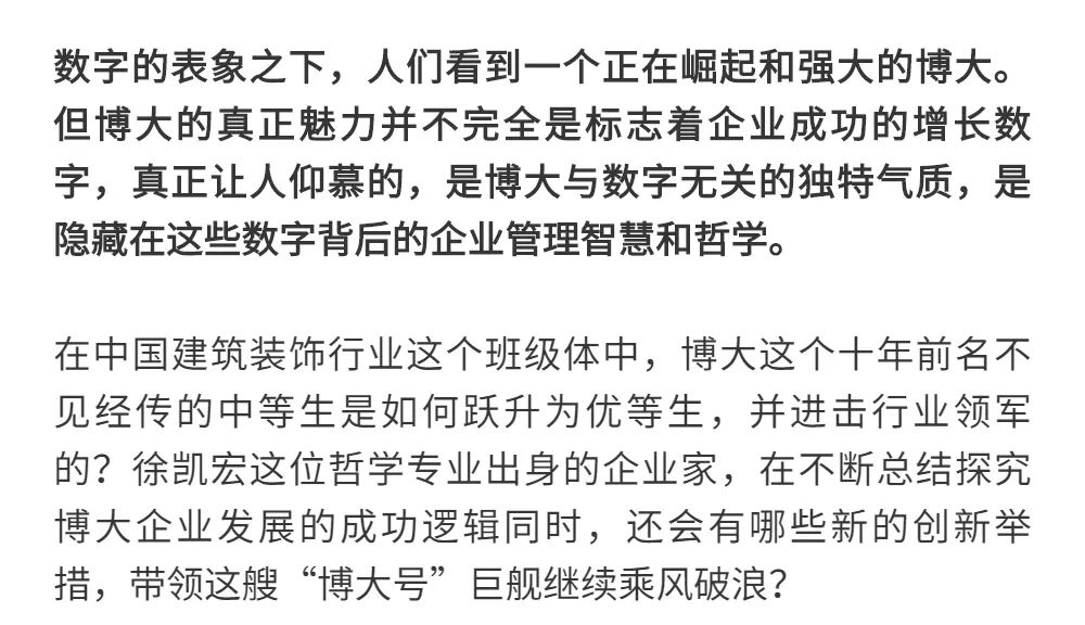 恰逢博大建設集團再次躍升至中國建筑裝飾行業百強第3名的喜訊,現把兩篇深度好文再次轉發,以饗讀者。
