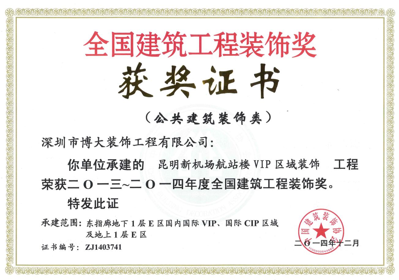 博大以精益求精的工匠精神成就大國品質,榮獲中國建筑裝飾最高獎——魯班獎、中國建筑裝飾工程獎,博大被云南省委、省政府授予“先進集體嘉獎”榮譽稱號。